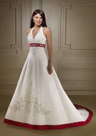 Halter - a sexy style, the neckline scoops in front and fastens behind your neck, leaving your arms bare. Great for a summer wedding.